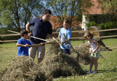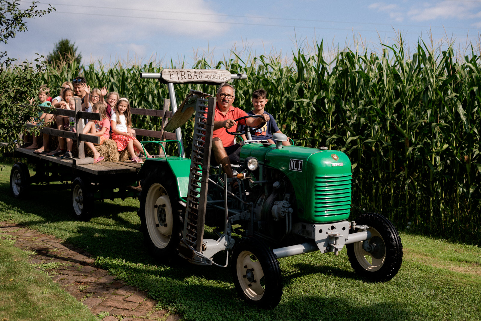 Pred ali po kulinaričnem doživetju, po aktivnosti ali preprosto za zabavo – skočite na prikolico, mlajši in starejši, in že se veselo peljemo naokrog po dvorišču. Vožnja je kratka, a ravno pravšnja, da ostane kot top spomin in nasmeh v ekipi.