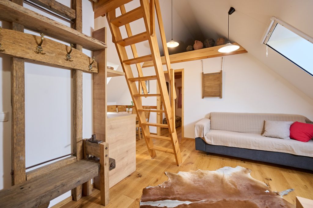 Na drugi strani hiše se nahajata vhod v apartma, ki sprejme do pet oseb. Apartmaji so popolnoma opremljeni in pripravljeni, da nudijo vso udobje doma. Prejeli so tudi najvišjo oceno (4 jabolka), kar nudi dodaten razlog za rezervacijo vašega oddiha na domačiji Firbas.