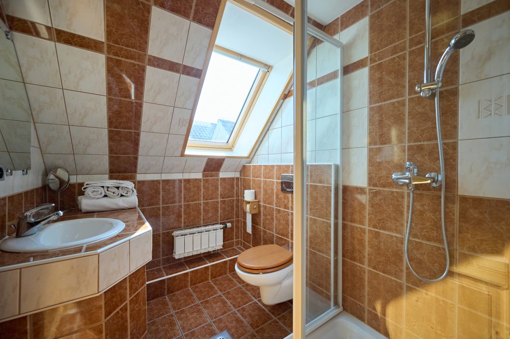 Kopalnica z obilico naravne svetlobe nudi prostorno prho, brisače, osnovno kozmetiko, sušilec za lase.